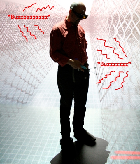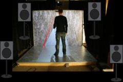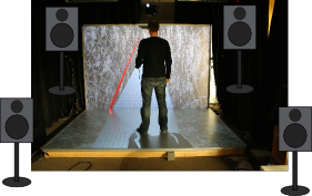 In this diploma thesis project we study the effects of environmental spatial sound feedback on the navigational behavior of test users in a virtual environment. To this end we implemented a set of modules for the ACTIF interaction framework providing a range of different sound modes. The goal was to enhance the user's perception of his virtual surroundings, by not only giving visual feedback of nearby objects (specifically the walls of the room the user is in), but also providing an aural ``sense'' of object proximity. In addition to full surround sound we use haptic feedback from a vibrating sound floor.